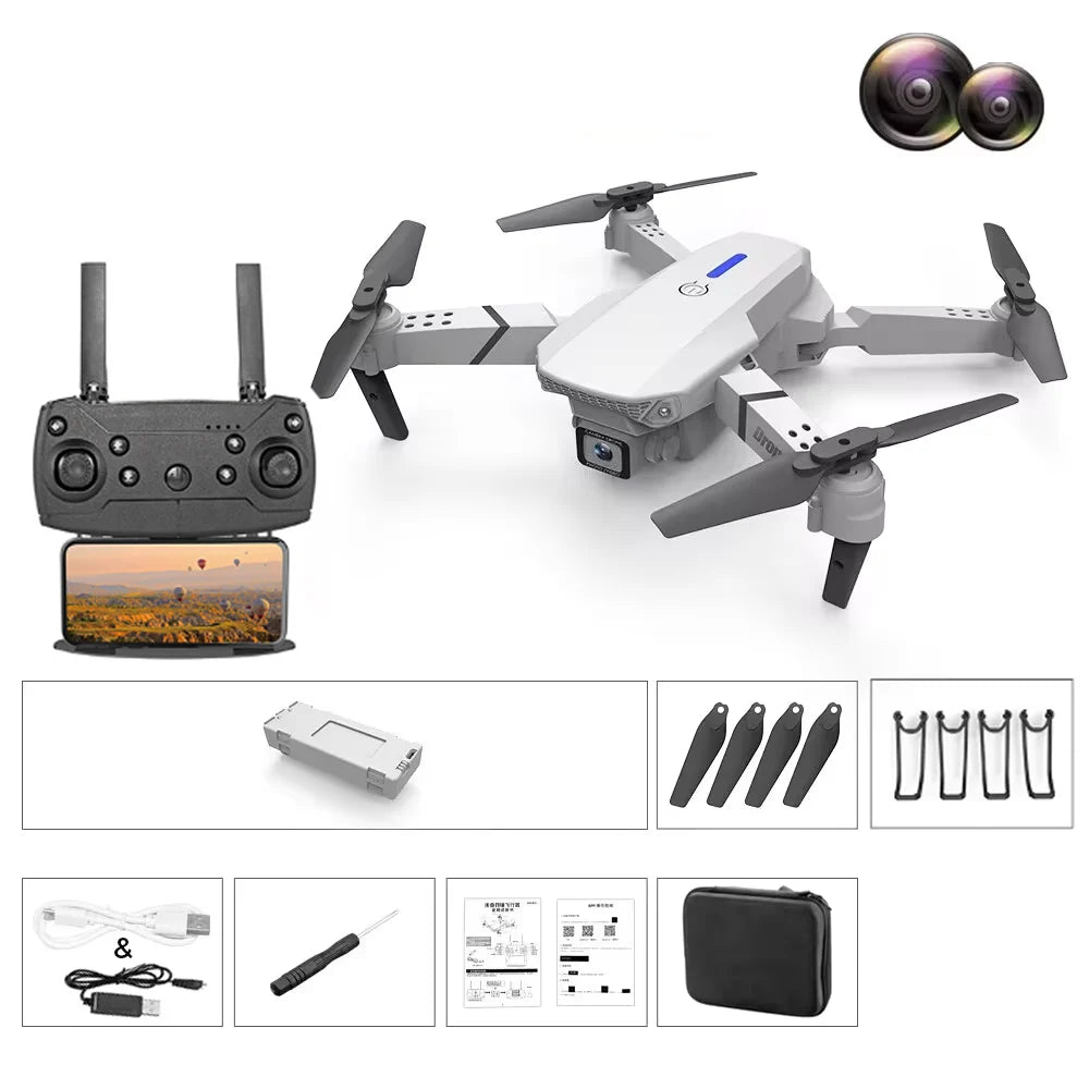 The E88 is equipped with dual camera options to capture stunning, high-definition images and videos. The 4k camera provides incredible detail and clarity, perfect for outdoor filming, photography, and capturing your aerial adventures. Enjoy a wide-angle view and seamless footage transmission to your mobile device in real-time through the Wi-Fi FPV function.